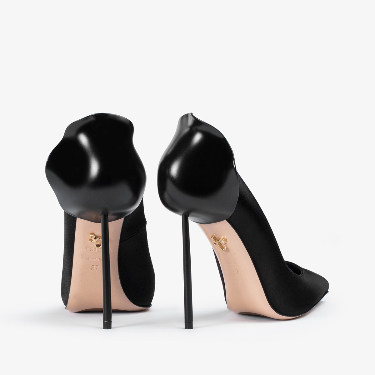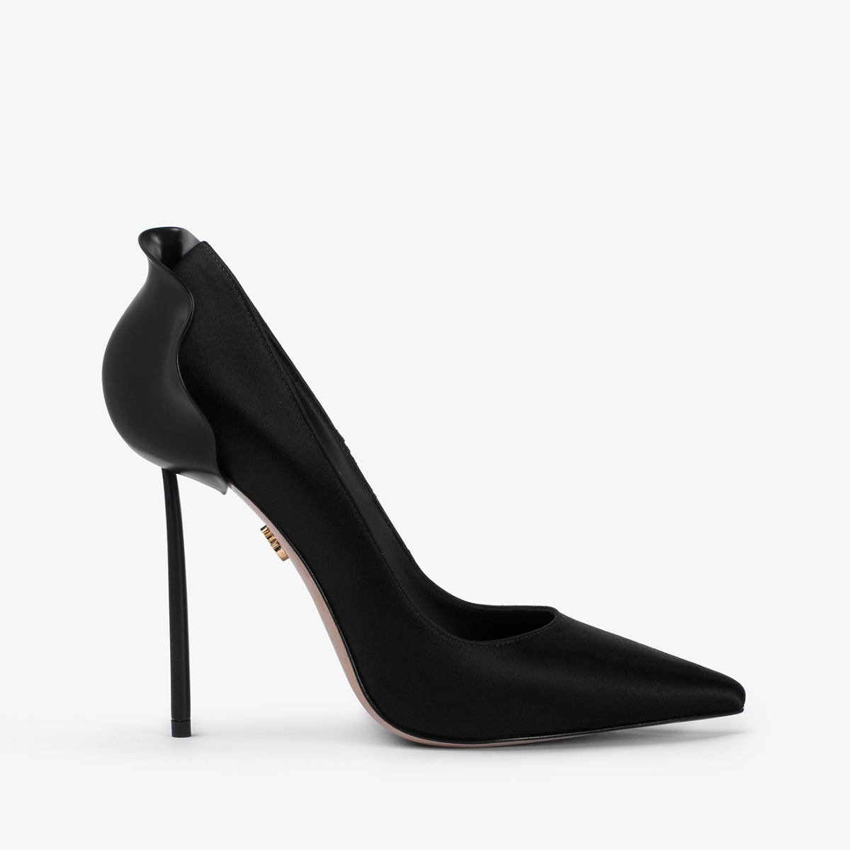To celebrate its 30th anniversary, Le Silla presents the limited edition Petalo pump in black "Tulip" satin, a tribute to the unique beauty of every woman. Part of the "Les Nuances" collection, this shoe is distinguished by its handcrafted flower, a symbol of unparalleled artisanal excellence. The 120mm stiletto heel elegantly elongates the silhouette, while the "30°" logo on the sole proudly marks three decades of innovation and style.