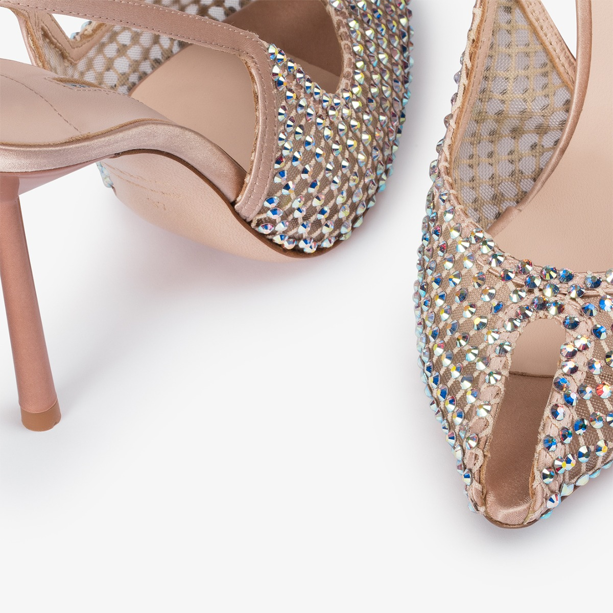 Skin nude mesh slingback with Crystals