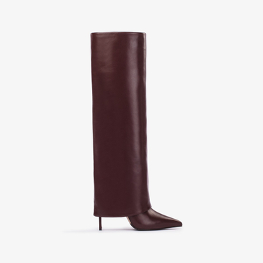 Dark chocolate brown nappa leather cuffed knee boot